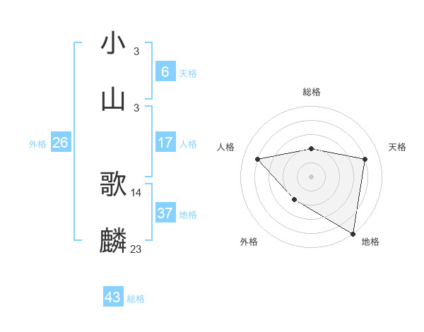 小山 歌麟さんを姓名の画数から五運を鑑定