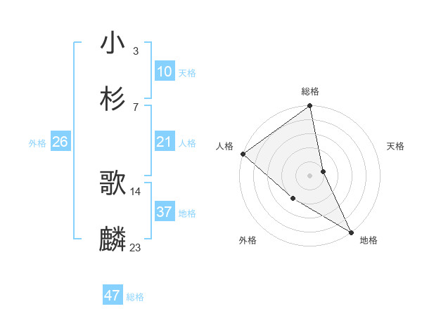 小杉 歌麟さんの総格は47画の5点!