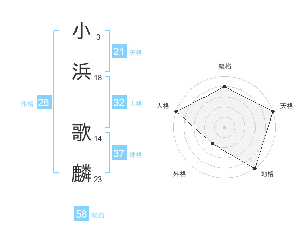 小浜 歌麟さんを姓名の画数から五運を鑑定