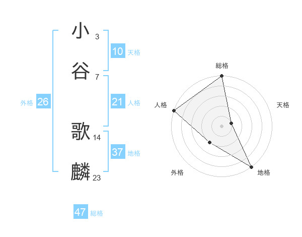 小谷 歌麟さんを姓名の画数から五運を鑑定