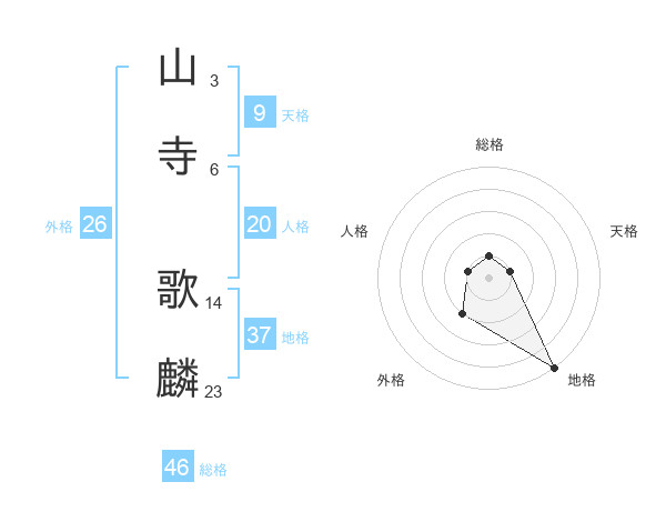 山寺 歌麟さんの総格は46画の1点!