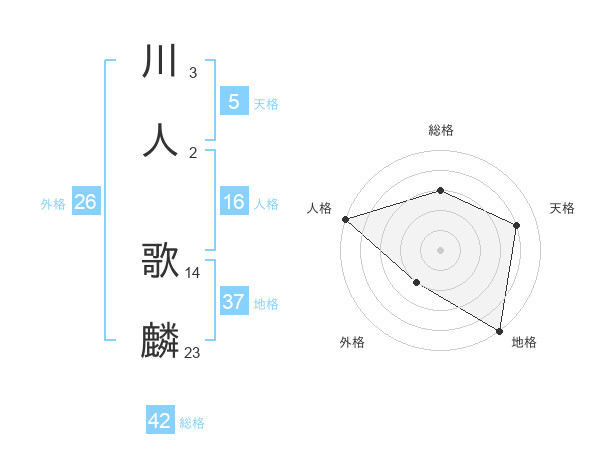 川人 歌麟さんの総格は42画の3点!