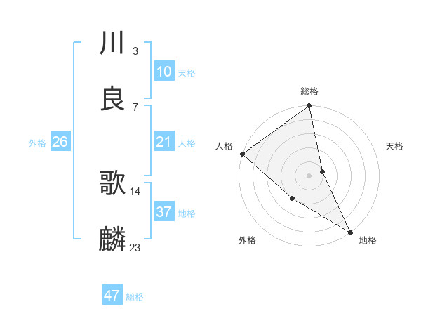 川良 歌麟さんを姓名の画数から五運を鑑定
