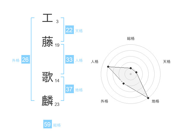 工藤 歌麟さんの総格は59画の1点!