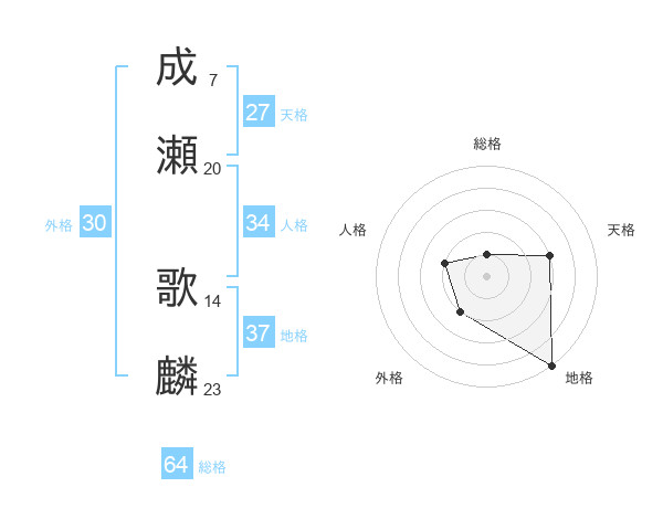 成瀬 歌麟さんの地格は37画の5点!