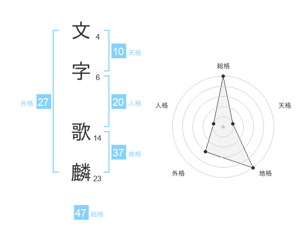 文字 歌麟さんを姓名の画数から五運を鑑定