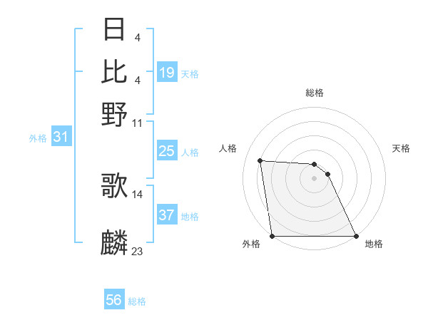 日比野 歌麟さんを姓名の画数から五運を鑑定