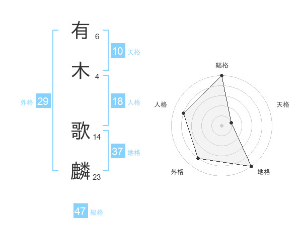 有木 歌麟さんの総格は47画の5点!