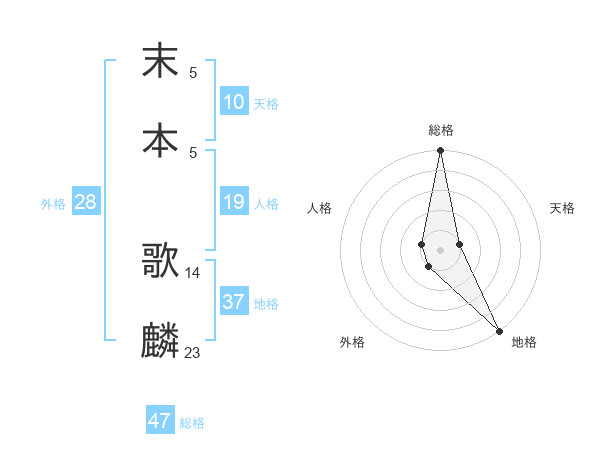 末本 歌麟さんの総格は47画の5点!