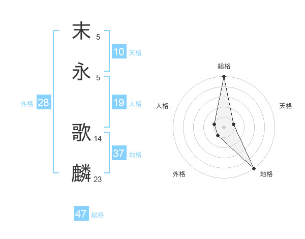 末永 歌麟さんの総格は47画の5点!