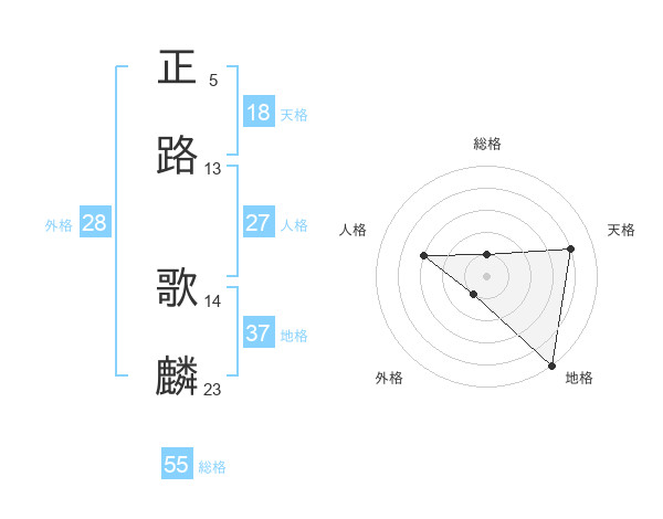 正路 歌麟さんを姓名の画数から五運を鑑定
