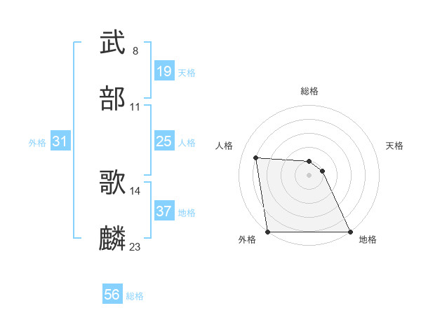 武部 歌麟さんを姓名の画数から五運を鑑定