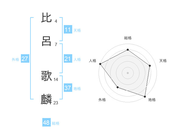 比呂 歌麟さんを姓名の画数から五運を鑑定