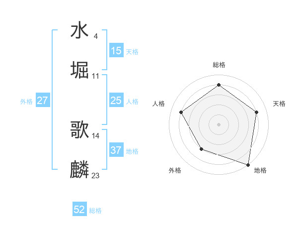 水堀 歌麟さんを姓名の画数から五運を鑑定