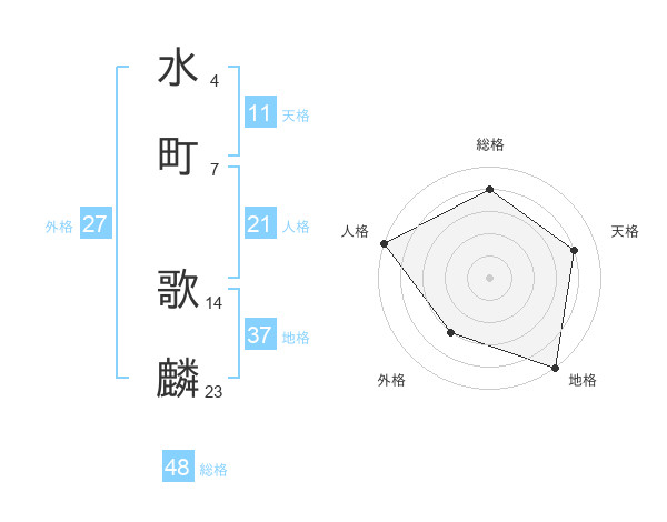 水町 歌麟さんの総格は48画の4点!
