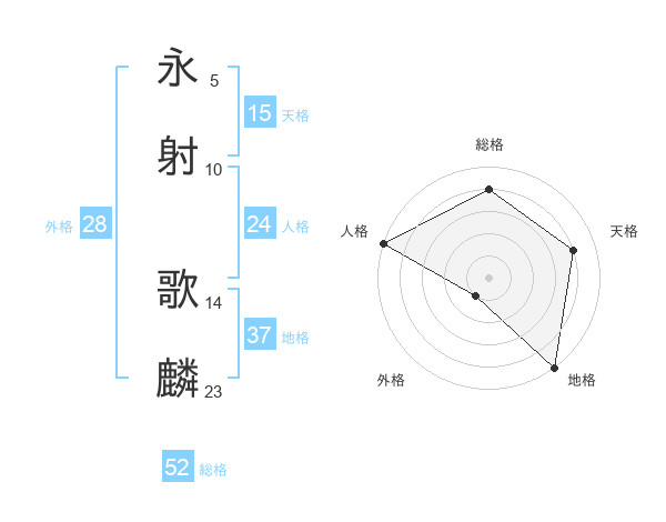 永射 歌麟さんの総格は52画の4点!