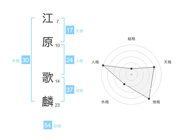 江原 歌麟さんの総格は54画の1点!