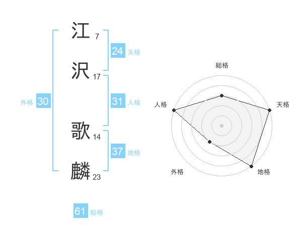 江沢 歌麟さんの総格は61画の3点!