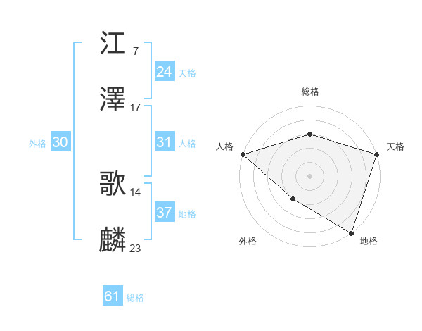 江澤 歌麟さんの総格は61画の3点!