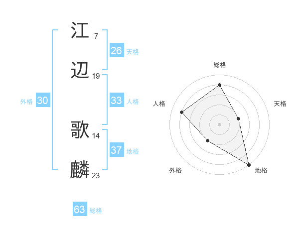 江辺 歌麟さんの総格は63画の4点!