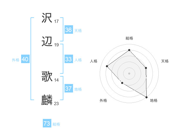 沢辺 歌麟さんを姓名の画数から五運を鑑定