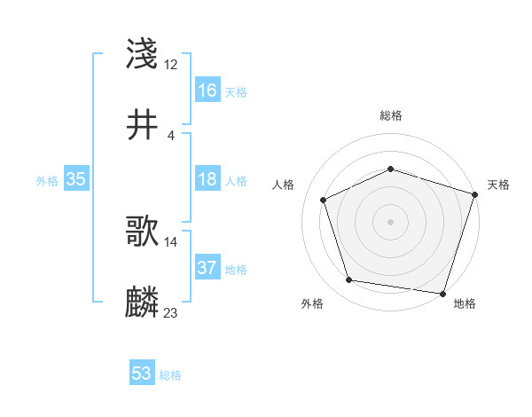 淺井 歌麟さんの総格は53画の3点!