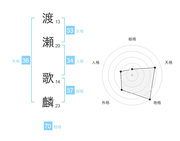 渡瀬 歌麟さんの天格は33画の4点!