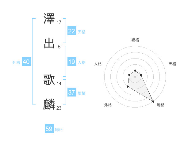 澤出 歌麟さんの総格は59画の1点!