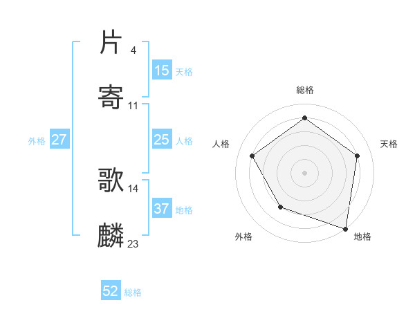 片寄 歌麟さんの総格は52画の4点!