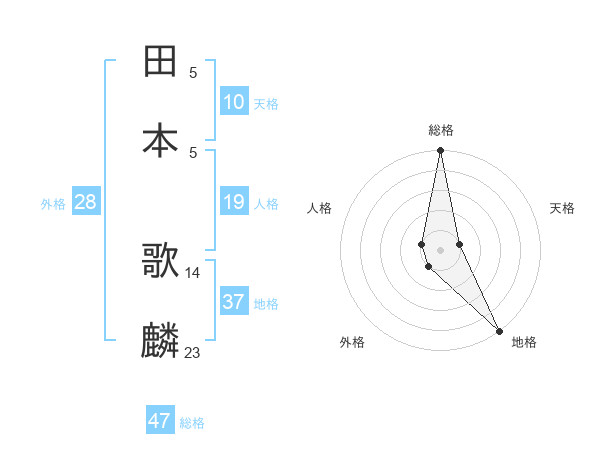 田本 歌麟さんを姓名の画数から五運を鑑定