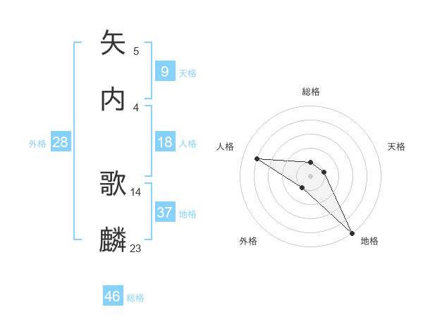 矢内 歌麟さんの総格は46画の1点!