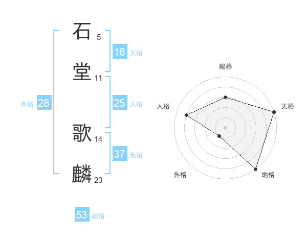 石堂 歌麟さんの天格は16画の5点!