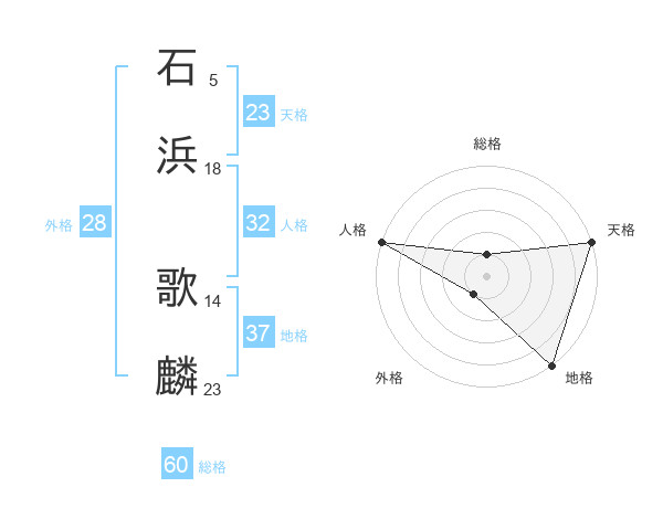 石浜 歌麟さんの天格は23画の5点!