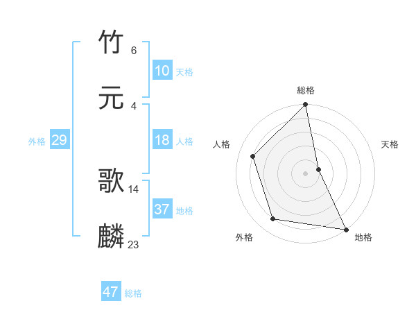 竹元 歌麟さんを姓名の画数から五運を鑑定