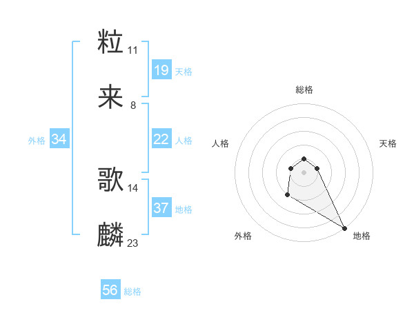 粒来 歌麟さんを姓名の画数から五運を鑑定