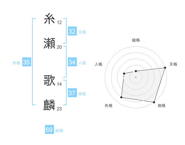 糸瀬 歌麟さんを姓名の画数から五運を鑑定