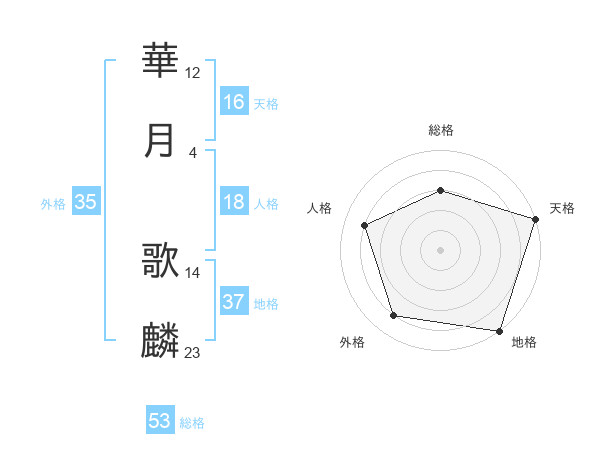 華月 歌麟さんを姓名の画数から五運を鑑定