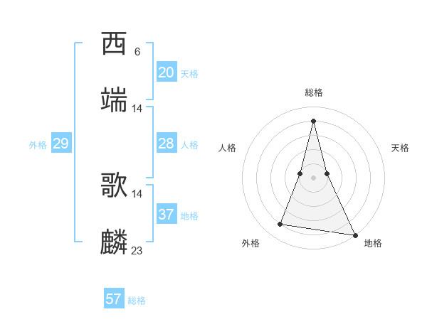 西端 歌麟さんの総格は57画の4点!