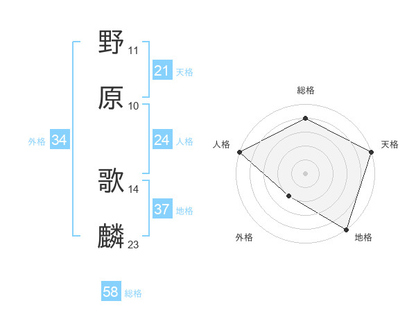 野原 歌麟さんの総格は58画の4点!