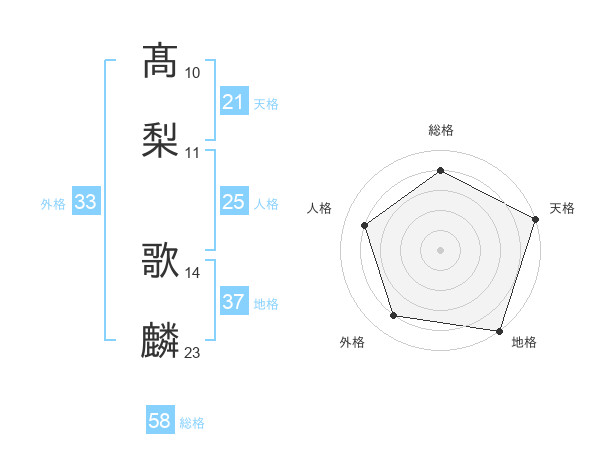 髙梨 歌麟さんを姓名の画数から五運を鑑定