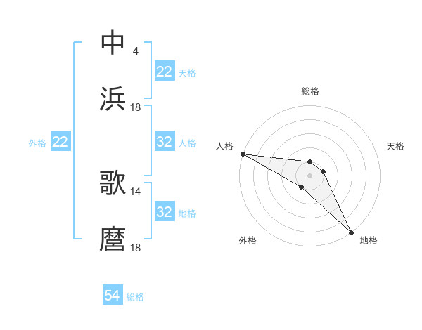 中浜 歌麿さんの総格は54画の1点!