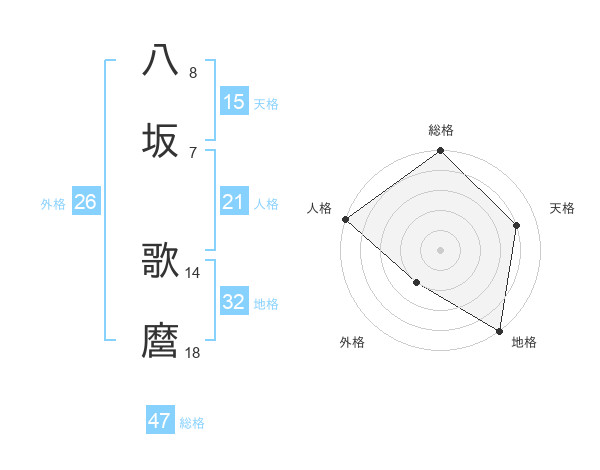 八坂 歌麿さんを姓名の画数から五運を鑑定