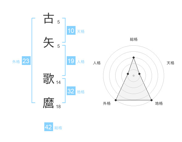 古矢 歌麿さんの総格は42画の3点!