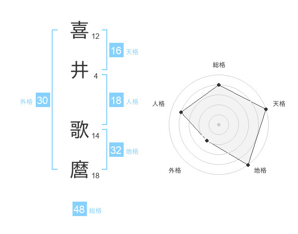 喜井 歌麿さんを姓名の画数から五運を鑑定
