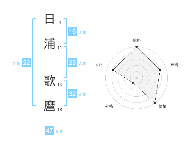 日浦 歌麿さんを姓名の画数から五運を鑑定