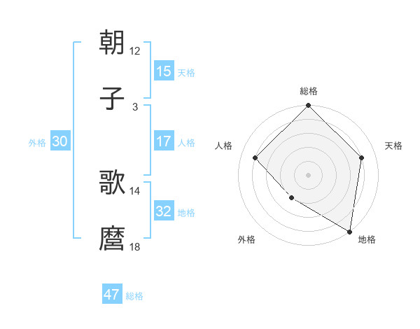 朝子 歌麿さんの総格は47画の5点!