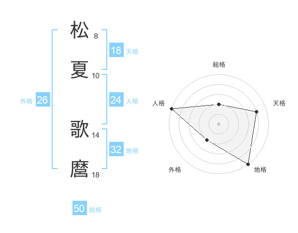 松夏 歌麿さんを姓名の画数から五運を鑑定