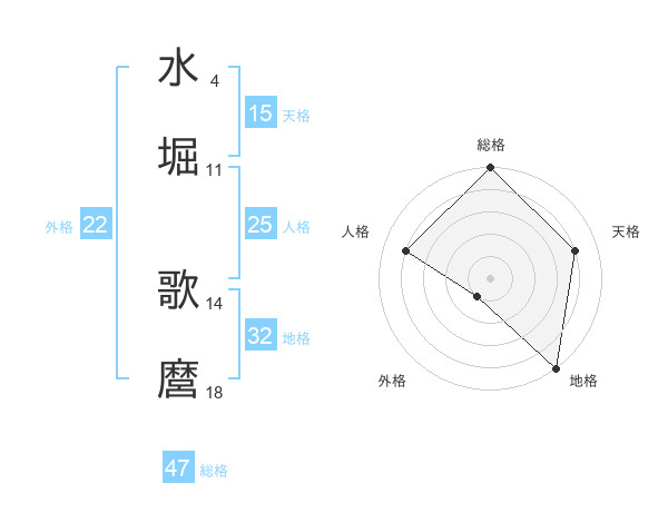 水堀 歌麿さんを姓名の画数から五運を鑑定