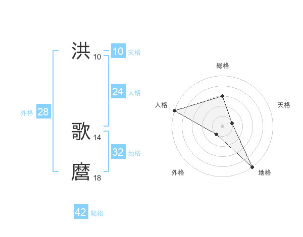 洪 歌麿さんを姓名の画数から五運を鑑定