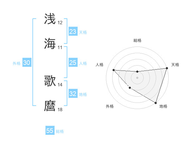 浅海 歌麿さんを姓名の画数から五運を鑑定